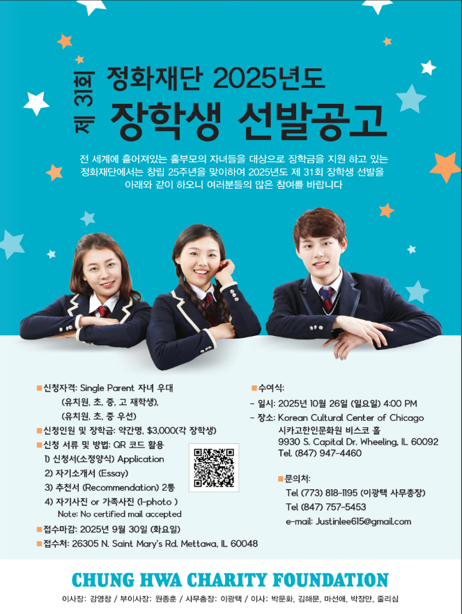 제 31회 정화재단 2025년도 장학생 선발공고 포스터